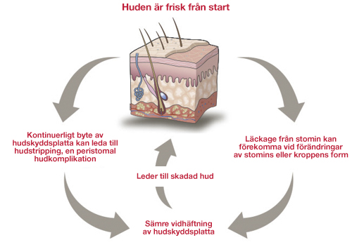 - Både läckage och frekventa byten av hudskyddsplattan minskar barriärens förmåga att fungera korrekt