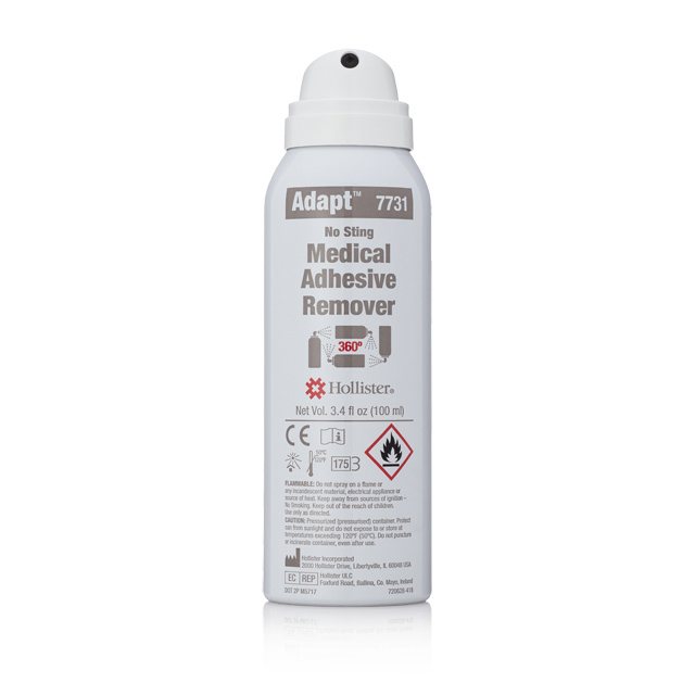 Adapt™ Remover Spray används för skonsam borttagning av stomibandage. En lätt dusch i kanten av hudskyddsplattan får häftan att släppa efter några sekunder. Innehåller en silikonlösning som varken svider eller kyler huden.