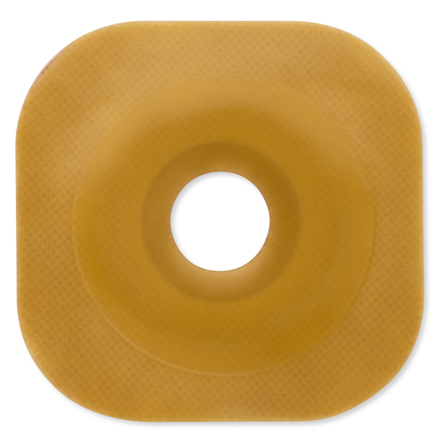 Plan hudskyddsplatta för tvådelsbandage med lyftbar låsring. Den lyftbara låsringen kan kopplas ihop med påsen utan att trycka på magen. Materialet i hudskyddsplattan heter FlexWear™ och kan användas av alla, men är förstahandsval för personer med fet, fuktig eller svettig hud. Den har hög motståndskraft mot aggressiva utflöden.
